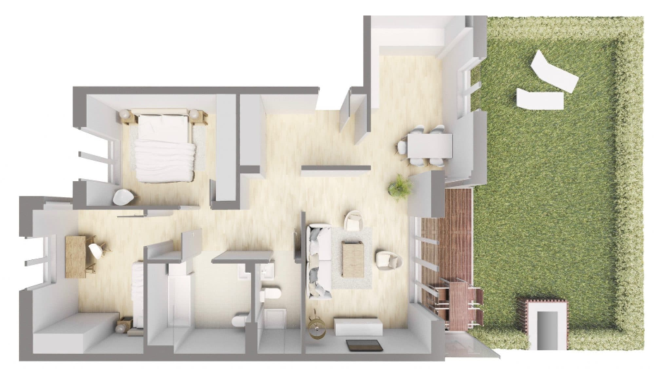 Wo noch vor wenigen Jahren eine größere Druckerei arbeitete, ist mittlerweile modernster Wohnraum entstanden. Familien, Paare, Singles – sie alle finden in der Bettinastraße 77-81 in Offenbach ein neues Zuhause zum Wohlfühlen. Insgesamt gibt es hier 45 Wohnungen und 2 Gewerbeflächen. Von Einzimmerwohnungen ab einer Größe von 33,1 Quadratmetern bis 4-Zimmer Wohnungen mit Platz bis zu 110,99 Quadratmetern bietet das junge, frische Wohnkonzept für jeden das passende Heim. Diese befinden sich im Vorderhaus sowie im Gartenhaus mit zwei Eingängen. Das Vorderhaus besticht durch seine Zwerchhaus-Architektur und empfängt seine Bewohner und Gäste mit einem schönen Vorgarten. Das Gartenhaus ist von einer begrünten Außenanlage umrahmt und für die kleinen Bewohner gibt es einen Spielplatz. Die Grundrisse der einzelnen Wohnungen sind wohl durchdacht und schaffen so ein maximales Wohnerlebnis.